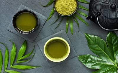 녹차는 카테킨이 풍부하고 카페인을 함유하고 있습니다. 이 두 성분의 조합은 체중 감량에 중요한 역할을 하는 것으로 나타났습니다. 녹차는 소화기관에서 콜레스테롤의 흡수를 억제하는 기능이 있습니다. 그래서 지방이 덜 쌓이게 해 다이어트에 도움을 줍니다.